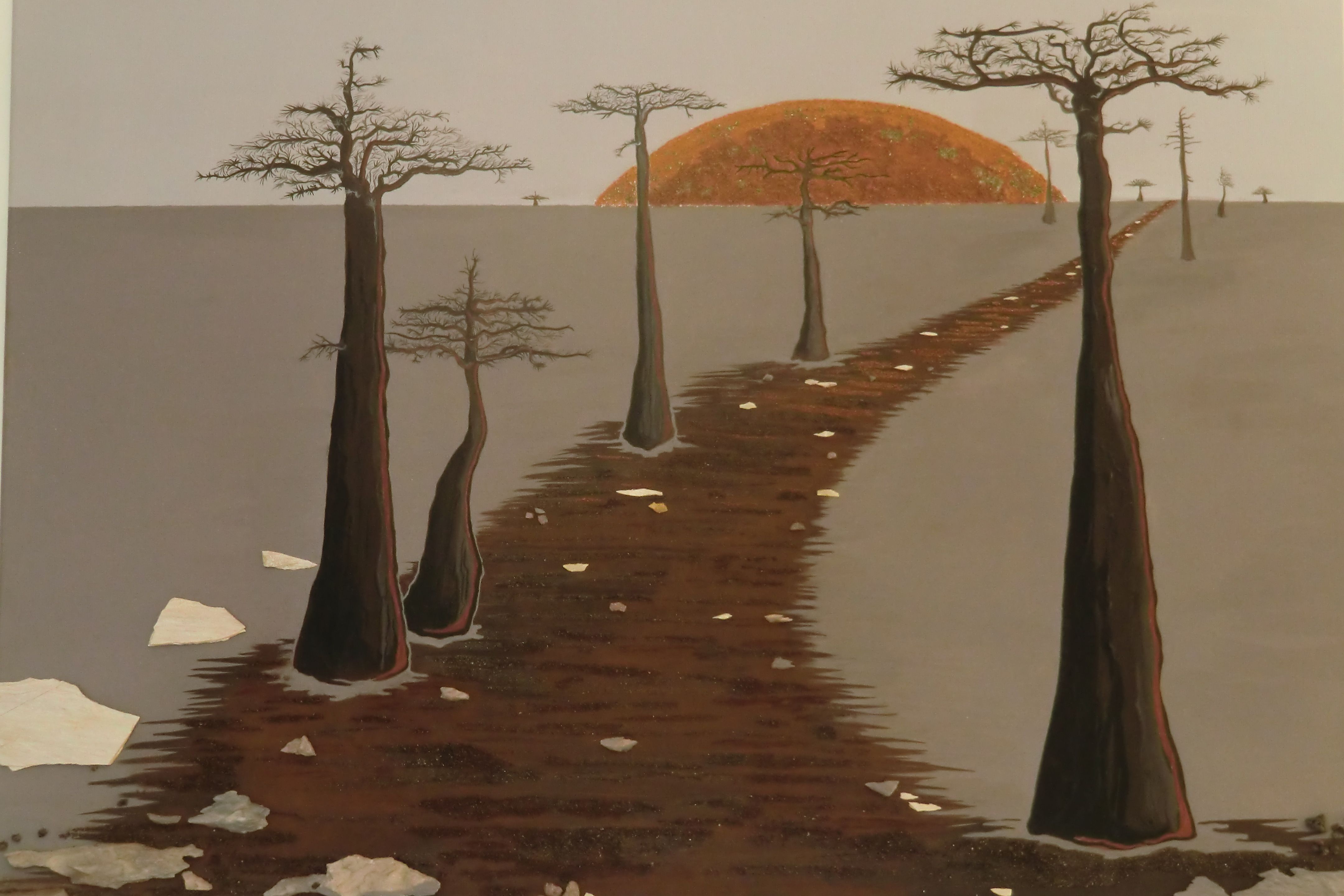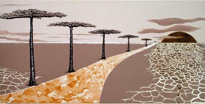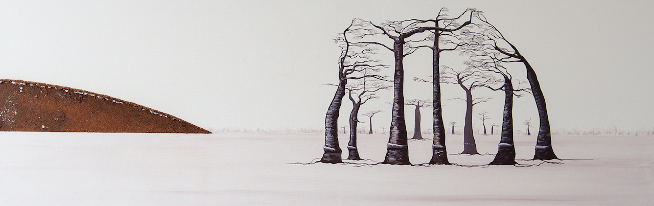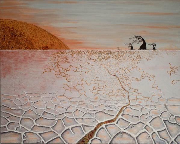 « Baobabs en terre déchirée, survie » – 100 x 80 – Acrylique sur toile et sables du mondePrix EUGENE BOUDIN Salon des Beaux Arts de la SNBA Carrousel du Louvre