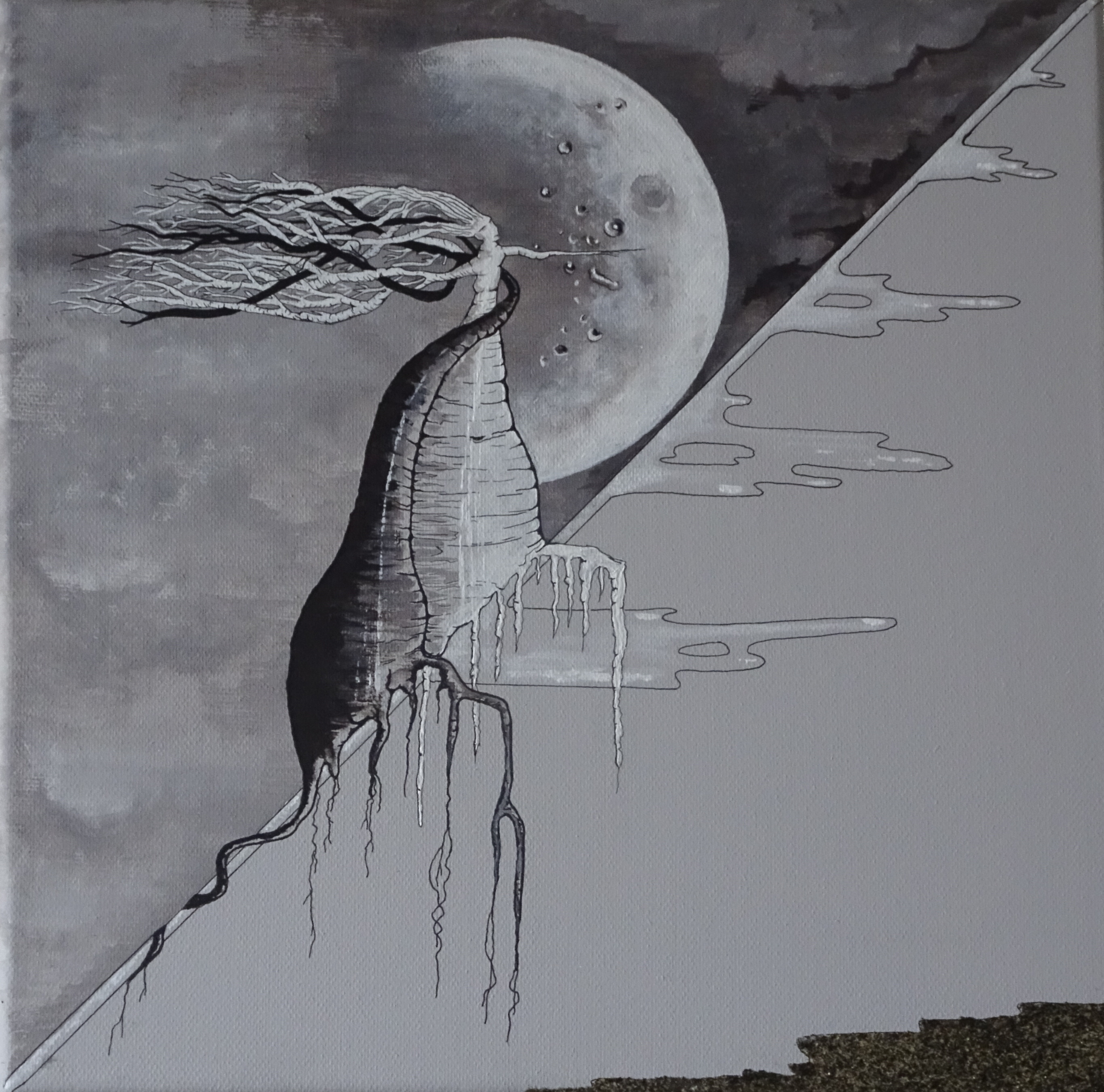 « Ma terre mes racines, enlacés sous la lune » – Acrylique sur toile – 30 x 30