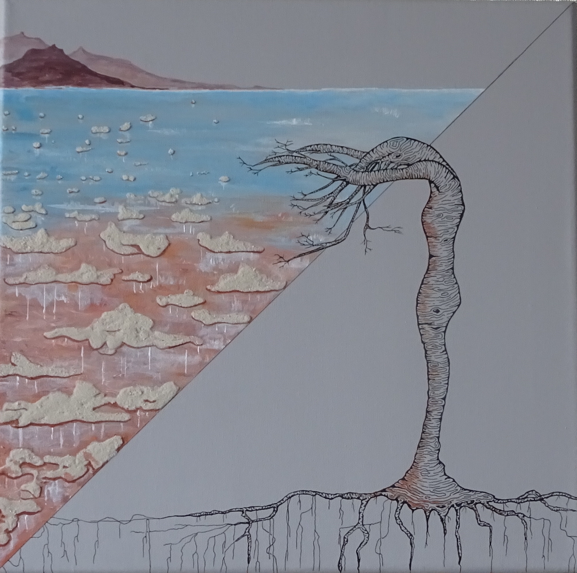 – DISPONIBLE – « Ma terre mes racines – solitaire » – Acrylique sur toile – sables du monde – 30 x 30