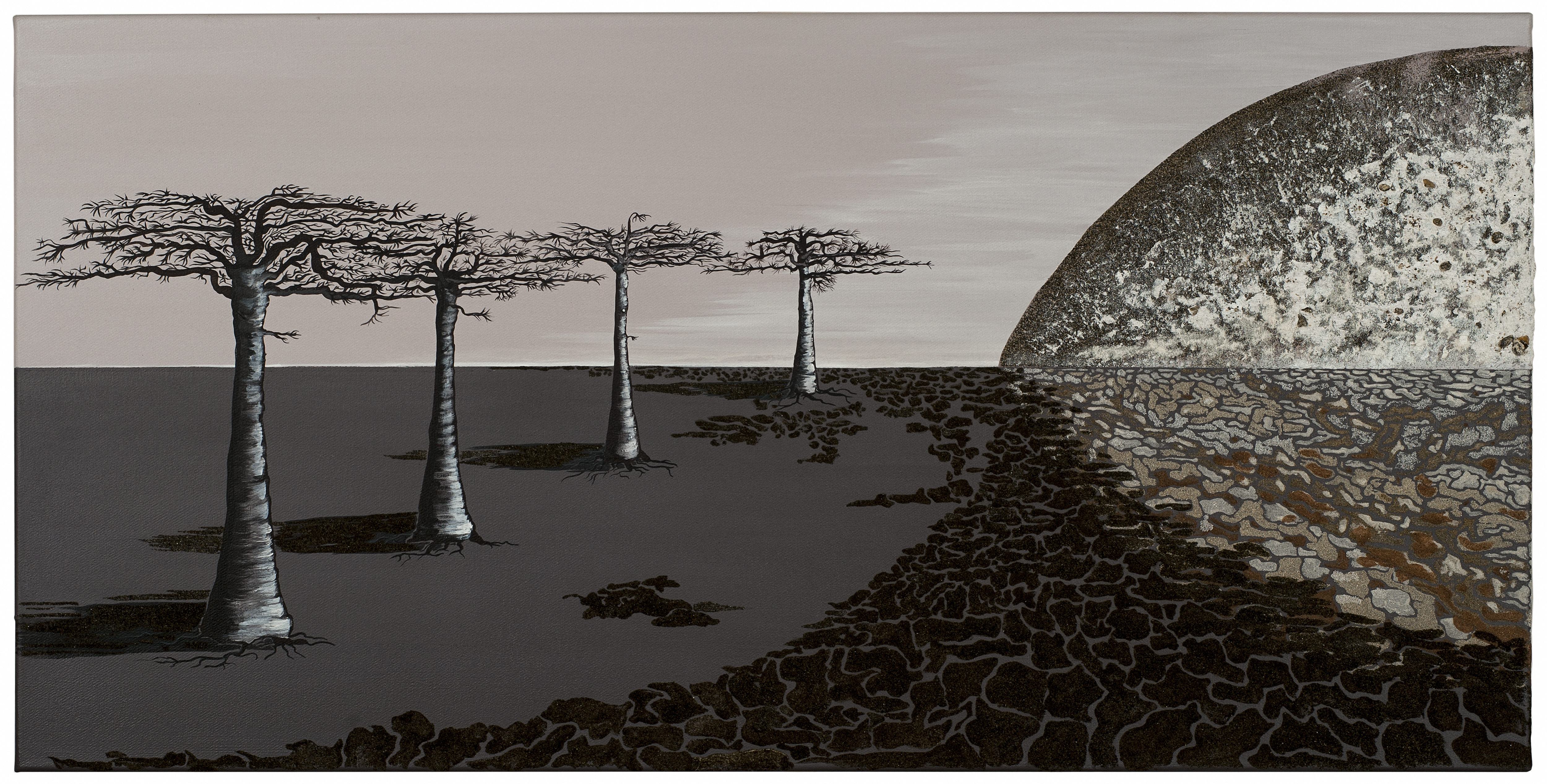 – DISPONIBLE – « baobabs en clair de lune » – Acrylique sur toile – 80 x 40 –
