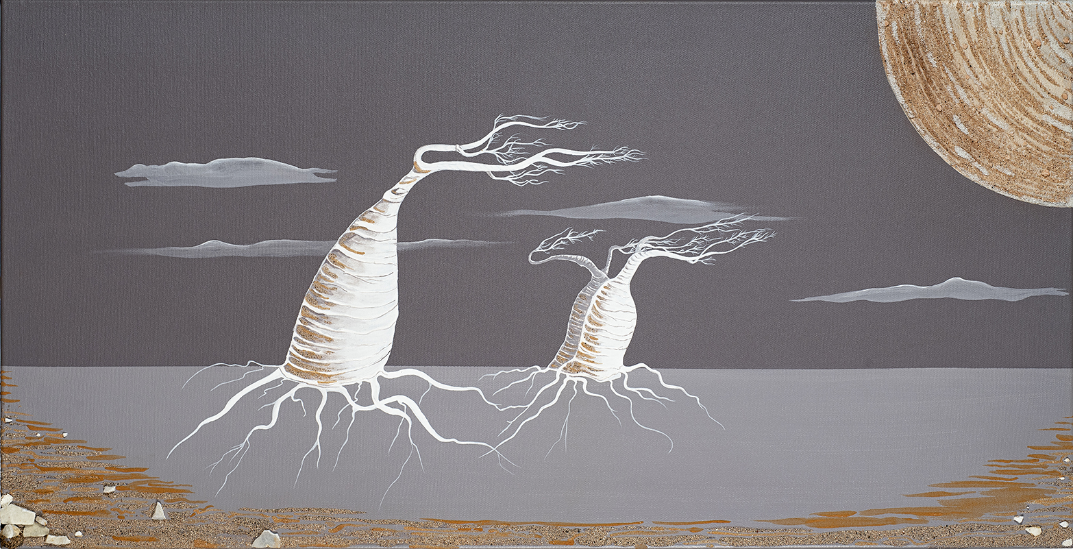 « Ors-izon-« aimotion » – baobabs 3″ – Acrylique sur toile et sables du monde – 100 x 70Sélection Art en Capital Paris Grand Palais Salon des artistes français